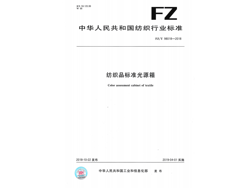 參與起草《紡織品標準光源箱》(FZ/T 98018-2018),該標準由中華人民共和國工業(yè)和信息化部于 2018-10-22 發(fā)布